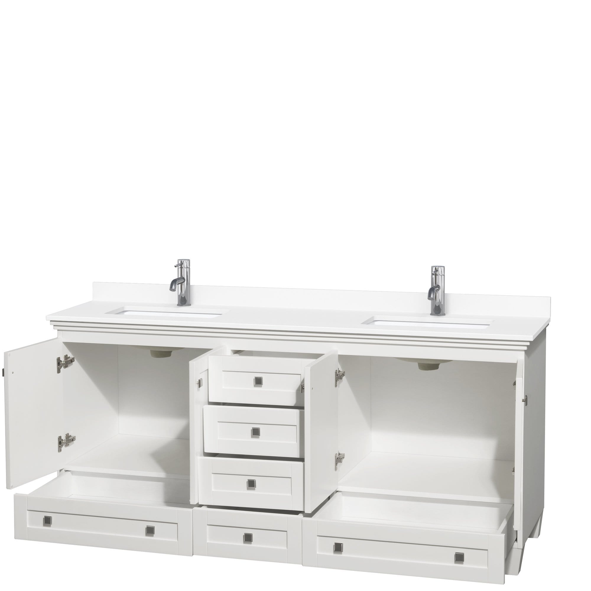 Wyndham Collection WCV800072DWHWCUNSMXX Acclaim 72 Inch Double Bathroom Vanity in White, White Cultured Marble Countertop, Undermount Square Sinks, No Mirrors
