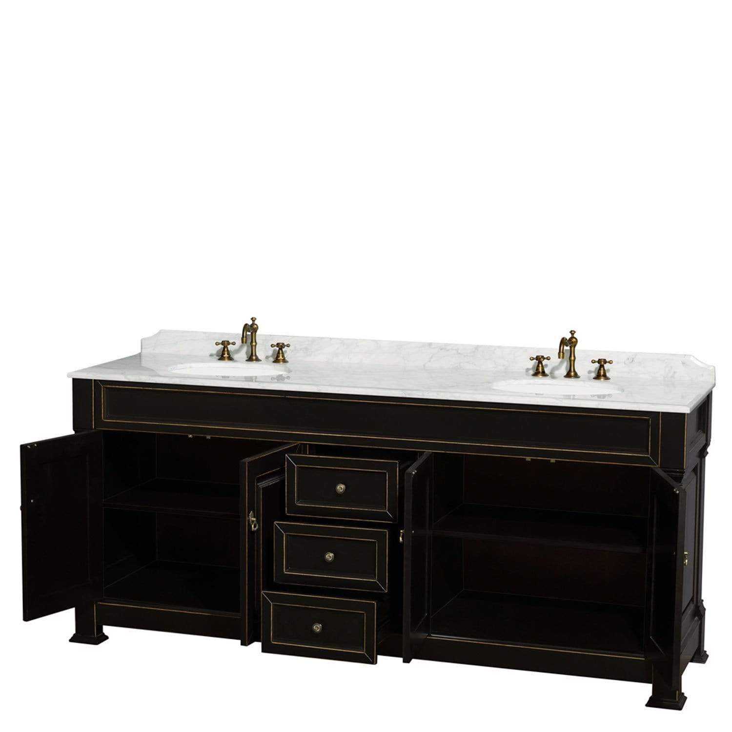 Wyndham Collection WCVTRAD80DBKCMUNOMXX Andover 80 Inch Double Bathroom Vanity in Black, White Carrara Marble Countertop, Undermount Oval Sinks, and No Mirror