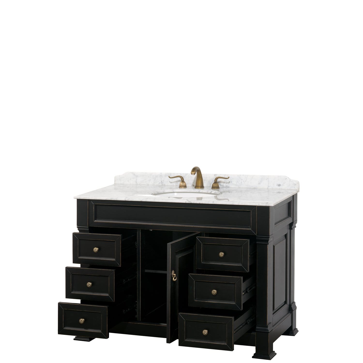 Wyndham Collection WCVTRAS48SBKCMUNOMXX Andover 48 Inch Single Bathroom Vanity in Black, White Carrara Marble Countertop, Undermount Oval Sink, and No Mirror