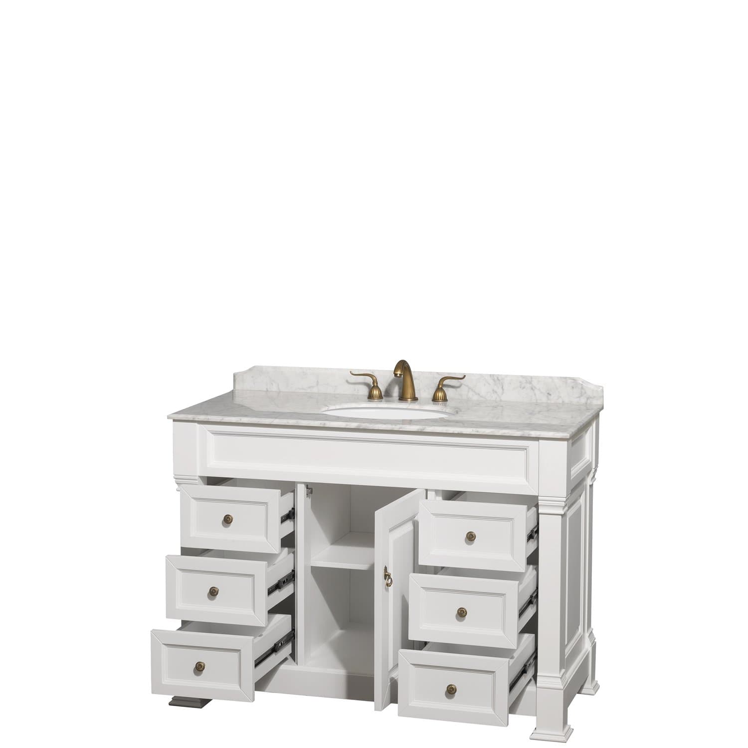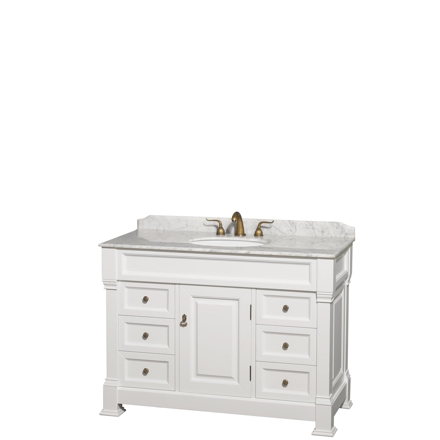 Wyndham Collection WCVTRAS48SWHCMUNOMXX Andover 48 Inch Single Bathroom Vanity in White, White Carrara Marble Countertop, Undermount Oval Sink, and No Mirror