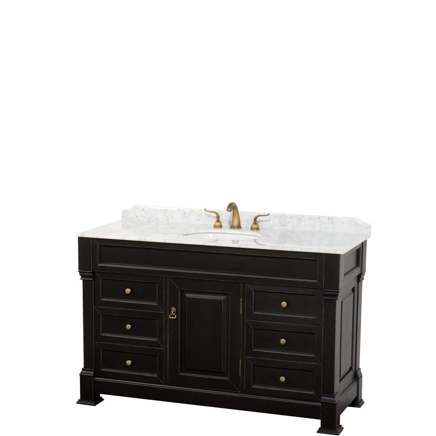 Wyndham Collection WCVTRAS55SBKCMUNOMXX Andover 55 Inch Single Bathroom Vanity in Black, White Carrara Marble Countertop, Undermount Oval Sink, and No Mirror