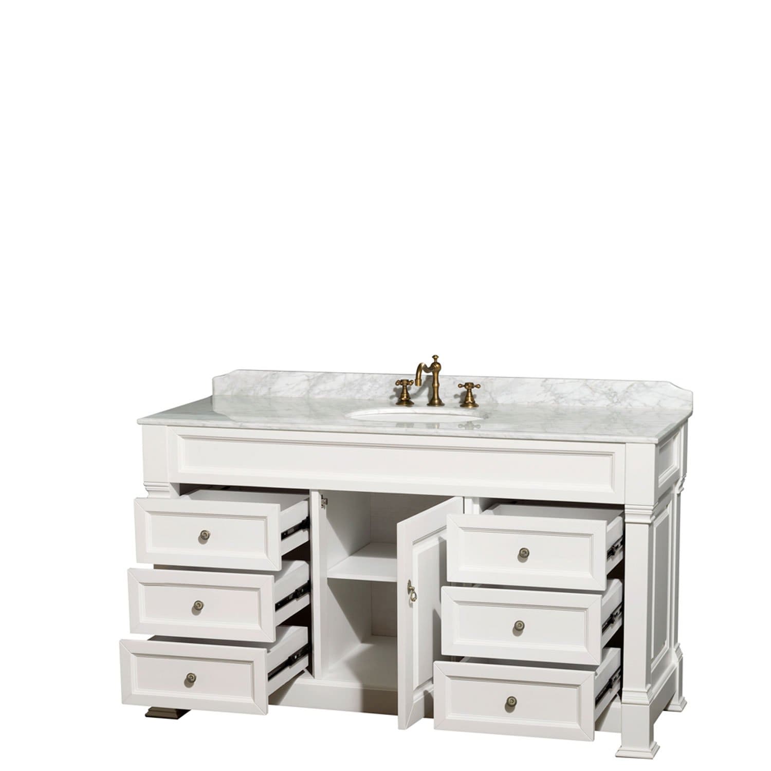 Wyndham Collection WCVTRAS60SWHCMUNOMXX Andover 60 Inch Single Bathroom Vanity in White, White Carrara Marble Countertop, Undermount Oval Sink, and No Mirror